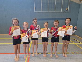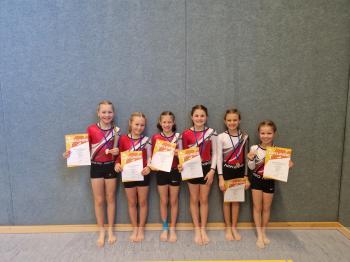 Im Wettkampf 20 (Jahrgang 2016) konnte die Mannschaft Blaichach 1 mit Ronja Lehmann, Anni Lenz, Magdalena Lindenbacher, Romina Übelhör, Anna Fischer und Ylena Skarke einen hervorragenden 1. Platz erturnen.